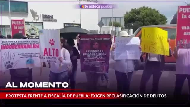 Un grupo de personas se manifiesta frente a la FGE para exigir justicia por Sahara Emilia, agredida con machetazos al defender perros en San Jerónimo Caleras.