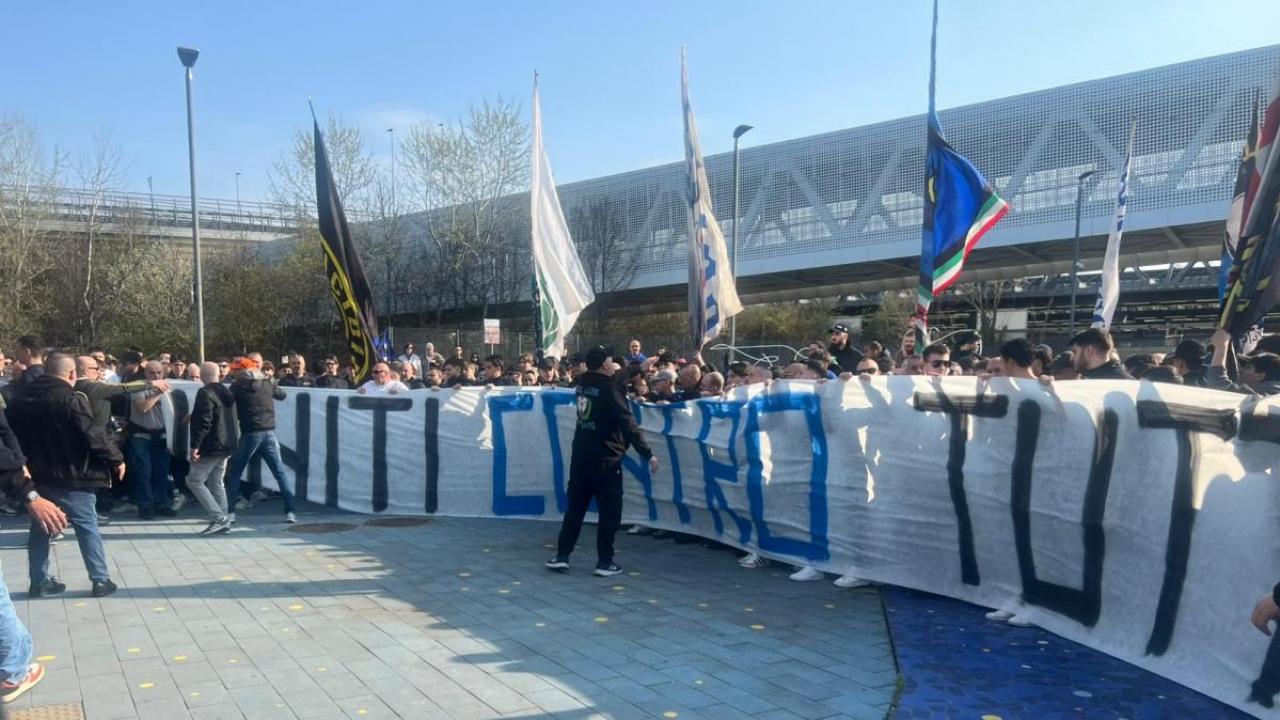 "Uniti contro tutti". Tifosi dell'Inter caricano la squadra in partenza per Firenze | FOTO