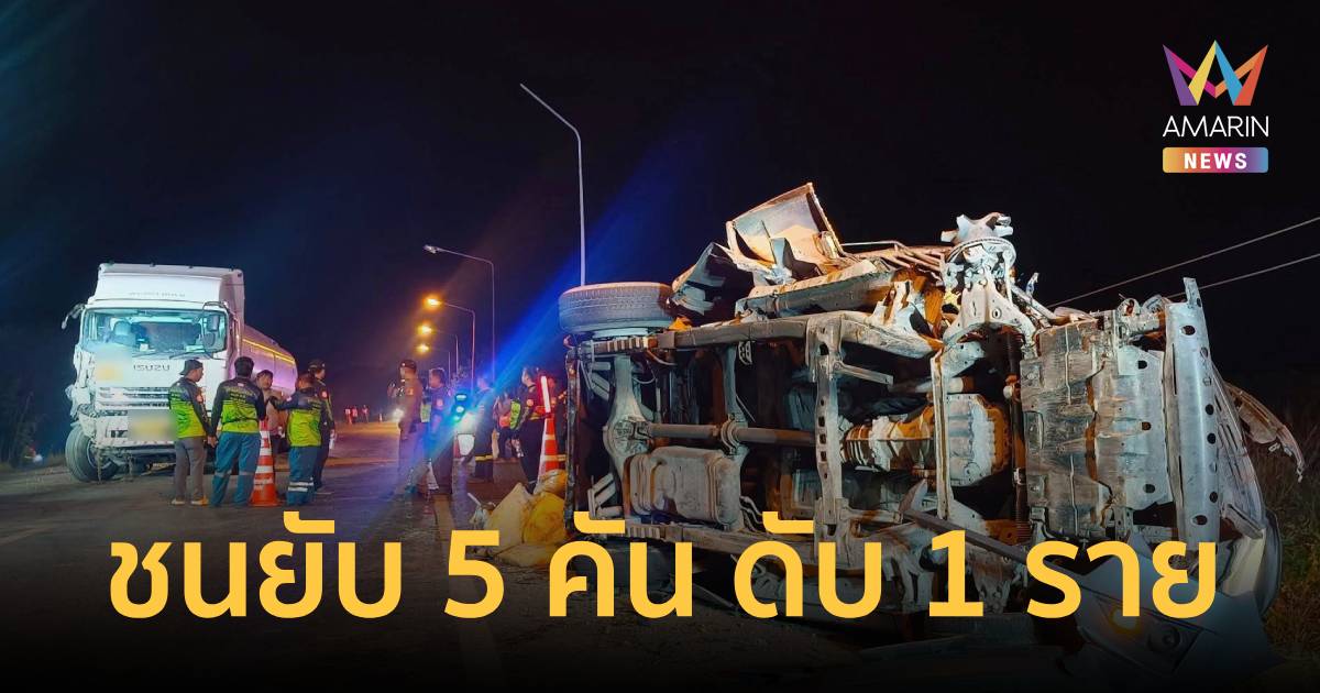 หลบไม่พ้น! อุบัติเหตุรถพ่วงแซงไม่พ้นเจอรถพ่วงอีกคันสวน ชนกันยับ 5 คัน ที่ จ.นครสวรรค์ เสียชีวิต 1 ราย บาดเจ็บอีก 5 ราย