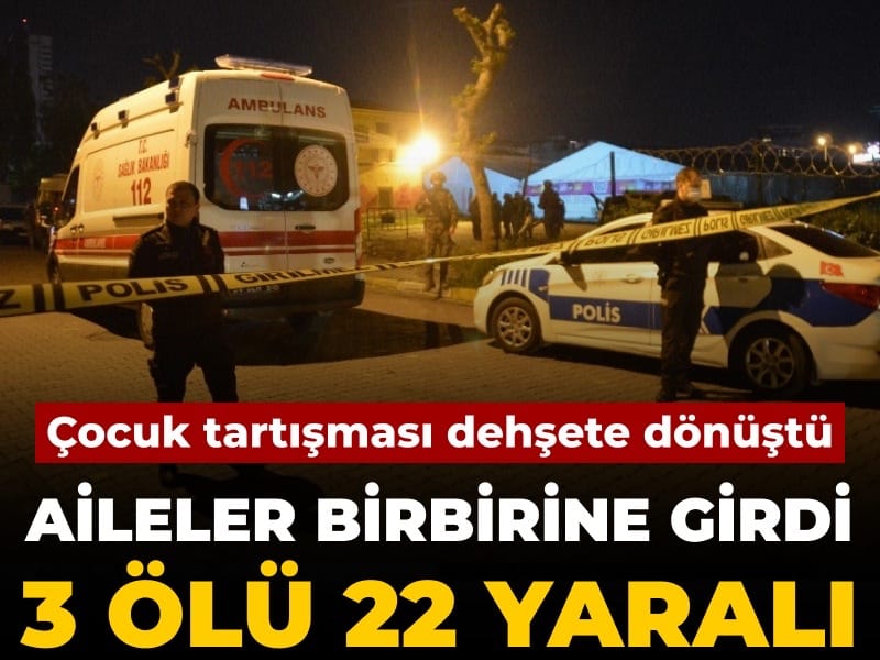 Hatay Altınözü’de iki aile arasında çıkan tartışma silah, bıçak, taş ve sopalı kavgaya dönüştü. Olayda 1’i kadın 3 kişi öldü 22 kişi yaralandı. 6 şüpheli ise gözaltında.