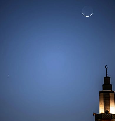 اقتران هلال العيد بكوكب الزهرة يزيّن سماء الحدود الشمالية