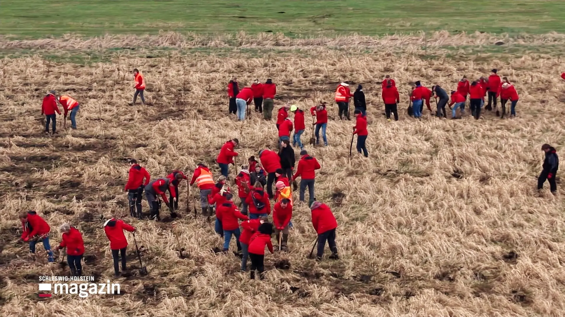 Um einen Klimawald anzulegen pflanzen 200 Freiwillige, was das Zeug hält. 7.500 Laubbäume kommen in die Erde.