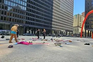 یک هنرمند ایرانی با اجرای پرفورمنسی در شهر شیکاگوی آمریکا، اعتراض خود را نسبت به تجاوز نظامی آمریکا و اسرائیل علیه کودکان ایران به نمایش گذاشت. یک هنرمند ایرانی با اجرای پرفورمنسی در شهر شیکاگوی آمریکا، اعتراض خود را نسبت به تجاوز نظامی آمریکا و اسرائیل علیه کودکان ایران به نمایش گذاشت. در این اجرا، امیر نورمحمدی با بهرهگیری از نمادهای نوروزی از جمله سفره هفتسین و همچنین کولهپشتیهایی با یاد دانشآموزان شهید مدرسه میناب، تلاش کرد یاد و نام این کودکان را زنده نگه دارد و پیام خود را به مخاطبان منتقل کند.