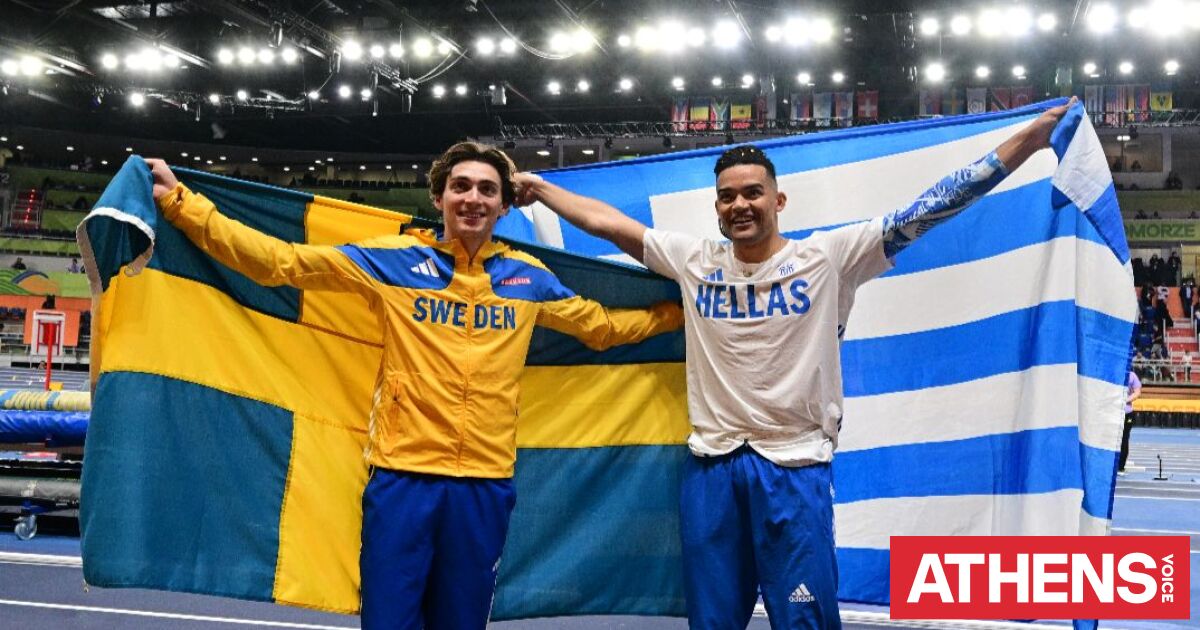 Οι δύο αγκαλιάστηκαν μετά τον τελικό στο άλμα επί κοντώ και φωτογραφήθηκαν μαζί με τις σημαίες των χωρών τους