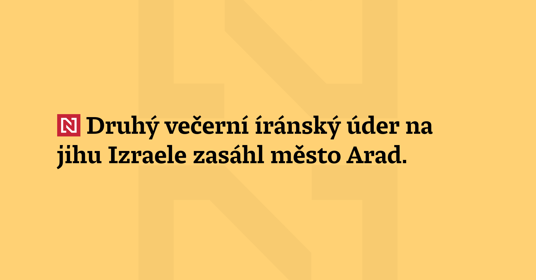 Druhý večerní íránský úder na jihu Izraele zasáhl město Arad....