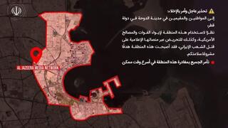 לקראת תקיפות נוספות של איראן בקטאר? טהרן קראה הערב לתושבי דוחא להתפנות בהקדם האפשרי ואמרה שהאזור "הפך למטרה לגיטימית בגלל פריסת הכוחות האמריקניים". היא פרסמה מפה עם המיקום של משרדי אל-ג'זירה: "הייתה הסתה להרוג את העם האיראני, כלי התקשורת שהסיתו יישאו באחריות"