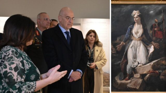 Επίσκεψη Δένδια στο Ξενοκράτειο Αρχαιολογικό Μουσείο Μεσολογγίου - Η συγκίνησή του μπροστά στον πίνακα του Ευγένιου Ντελακρουά (Εικόνες)
