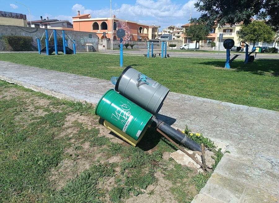Prima i graffiti, ora i calci e la distruzione dei paletti che reggono i bidoni differenziati