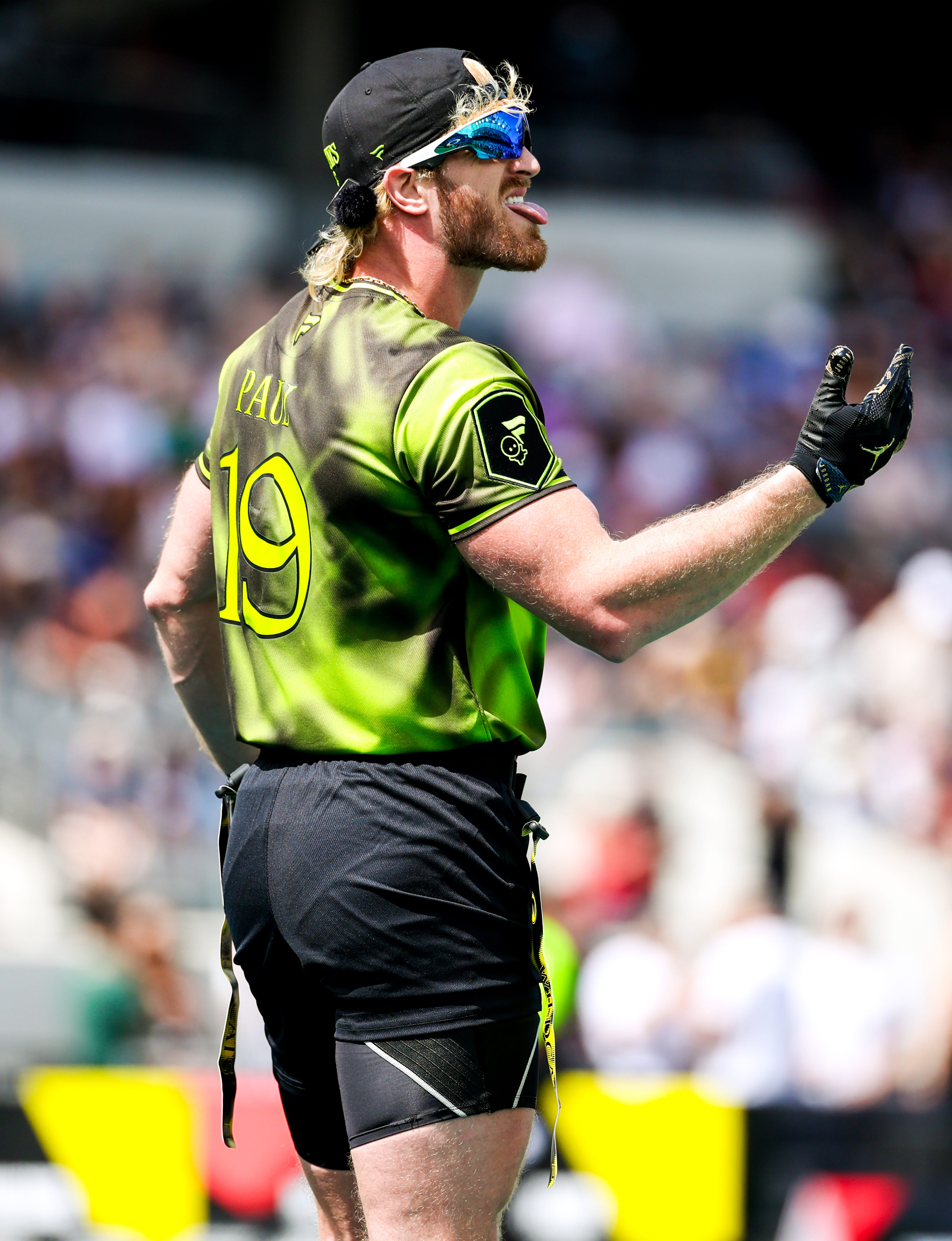 It didn't take Logan Paul long to start scrapping with an opponent at the Fanatics Flag Football Classic, which features Team USA, NFL stars and celebrities.