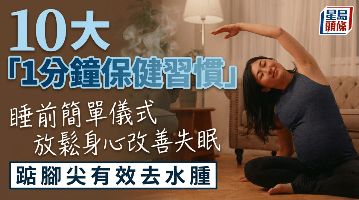 現代人生活忙碌,有專家分享10個超簡單保健習慣,每日只需要短短1分鐘,就能達到紓緩身心、去水腫、改善睡眠質素、護眼等功效。上班、等紅綠燈或等車的時間也能做! 專家大推10個「1分鐘保健習慣」睡前做1事放鬆身心更好眠 根據日媒《サンキュ!》報道,日本草藥師兼護士「けいこ」表示,不要因為沒時間就放棄照顧自己,即使是1分鐘的空閒時間,也要用心呵護自己,積少成多,為未來的身心健康做足儲備。她列舉了10件健