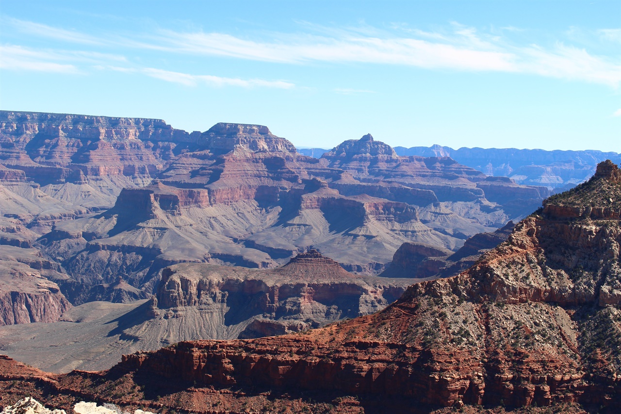 '장엄한 광경 바라보기' 시한부 판정을 받은 두 노인의 모험담을 그린 영화 '버킷 리스트(2007)'에 등장하는, 죽기 전 이루고 싶은 목록 중 하나다. 장대하고 위엄있는 광경 앞에 서면 말문이 막힌다고 했던가. 사진으로만 보던 그랜드 캐니언을 실물로 접했을 때, 눈앞에 펼쳐진 풍광에 압도되어 입이 떡 벌어졌다. '거대한(grand) 협곡'이라는 이름이 붙은 이유를 알 수 있었다. 깊이 1.6킬로미터, 너비 15킬로미터로 길게 뻗은 협곡의 총길이가 무려 450킬로미터다. 서울에서 부산까지 거리다. 이 협곡은 어떻게 형성됐을까. 약 5천만 년 전, 지각 변동으로 여러 개의 판(plate)이 충돌하면서 솟아 올랐고, 고원에 물이 흐르면서 협곡이 만들어졌다. 이 물이 로키산맥에서 발원해 멕시코 북부를 지나 캘리포니아만으로 흘러가는, 길이 2330킬로미터의 콜로라도(colorado)강이다. 이 강물 덕분에 20억 년에 걸쳐 퇴적된 지구의 속살이 드러났다. 지구 역사(46억 년)의 약 4할이 이 협곡에 고스란히 새겨져 있는 셈이다. 한 장소에서 고생대의 암석을 모두 볼 수 있는 장소는 이곳이 유일하다고 한다. 그랜드 캐니언을 지질학의 성지라 부르는 이유다. 이 협곡의 역사와 특성을 자세히 알고 싶으면 공원 안에 있는 박물관에 들르면 된다. 아메리카 원주민들의 삶의 터전이었던 이곳이 외부인(스페인 탐험가)에 의해 발견된 건 1540년이다. 그랜드 캐니언이 세상에 알려진 후, 땅에 묻힌 천연자원을 채굴하려는 광산업자들의 채굴 시도가 이어졌으나 1900년 초 미국 정부가 이 지역 전체를 개발 제한구역으로 지정하면서 원형 그대로 보존할 수 있게 되었다고 한다. 이 조치는 지금도 유지되고 있다. 연간 500만 명이 넘는 사람들이 이 장엄한 광경을 눈에 넣기 위해 이곳을 찾는다. 미국 정부가 외국인 관광객을 상대로 국립공원 입장료를 크게 올렸는데도 공원은 각국에서 온 관광객들로 북적이고 있었다. 트럼프 행정부는 올해 국립공원관리청(NPS) 예산을 대폭 삭감했고, 부족한 돈을 메우기 위해 외국인 관광객을 상대로 요금을 대폭 인상했다. 이에 따라 외국인은 그랜드 캐니언에 입장할 때 100달러의 비용을 추가 부담해야 한다. 단, 연간 이용권(America the Beautiful Pass)을 소지한 시민권자가 차량에 함께 타고 있으면 요금 납부 없이 입장할 수 있다. 다행히 일행 중 한 명이 미국 시민권자여서 비용을 아낄 수 있었다. 연방 예산의 0.1%에도 미치지 않는 국립공원 예산을 삭감한 것에 대해 미국 내에서도 비판의 목소리가 높다고 한다. 그랜드 캐니언은 크게 남쪽과 북쪽으로 나뉘는데, 남쪽(South Rim)은 연중 출입에 제한이 없고 북쪽(North Rim)은 일 년 중 절반만 개방한다. 남쪽은 어느 계절이든 방문이 가능하고 편의시설도 잘 갖추어져 있어서 인기가 높다. 인파를 피해 조용하고 한적한 분위기를 느끼려면 북쪽을 선택하면 된다. 남쪽에서 북쪽까지는 차로 4시간 이상이 걸리기 때문에 하루에 두 곳을 방문하는 건 무리다. 전체 내용보기