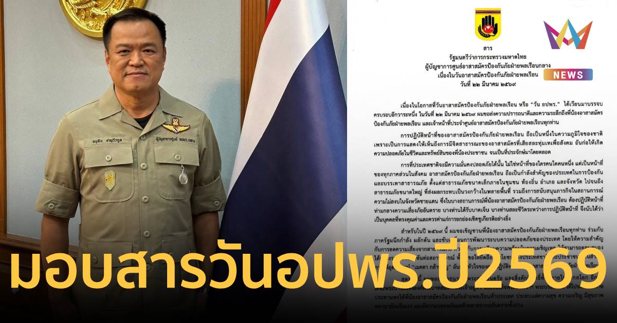 นายกฯ มอบสารเนื่องในวัน อปพร. ปี 2569 ยกย่อง คือกำลังสำคัญป้องกันและบรรเทาสาธารณภัย ตั้งแต่ในชุมชน-ภัยขนาดใหญ่