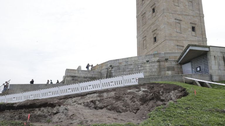 El retraso de los trabajos, cuya finalización estaba prevista para finales de junio, podría impedir las visitas al faro romano hasta más allá de julio