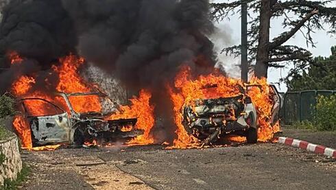 פצוע מפגיעה ישירה ברכב במשגב עם בגבול לבנון; מכוניות בוערות
