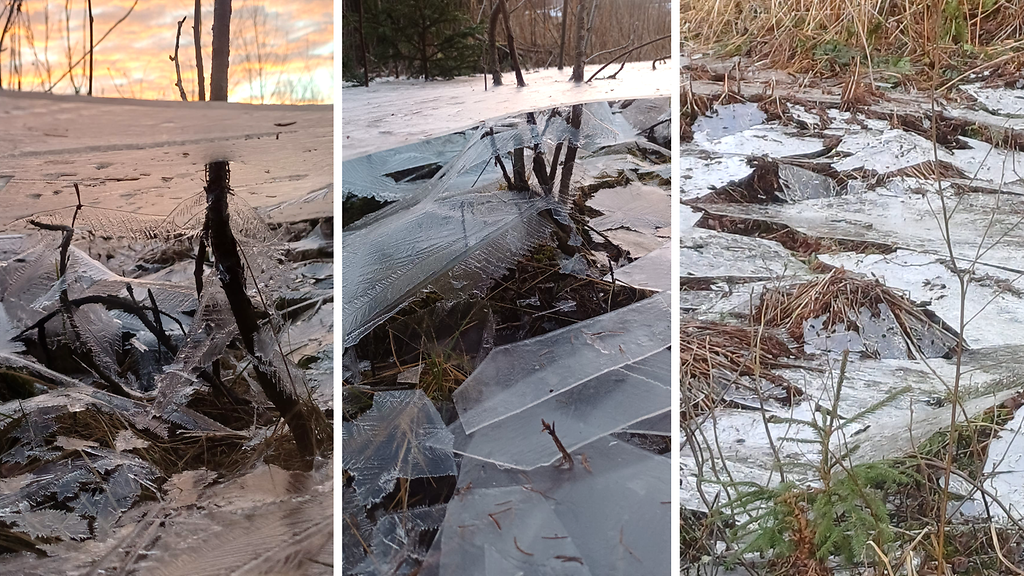 Mäntyharjulaisen Hannu Heikkilä kotikulmilla syntyi hieno jääpeite veden virratessa jään alta.