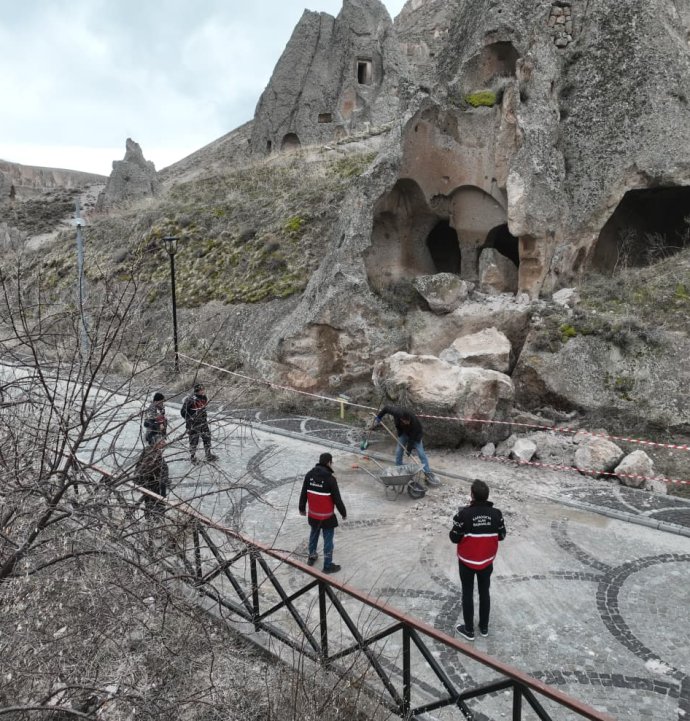 Kayseri'nin Yeşilhisar ilçesinde bulunan Soğanlı Vadisi'nde meydana gelen kaya kopmasının ardından güvenlik önlemi alındı.