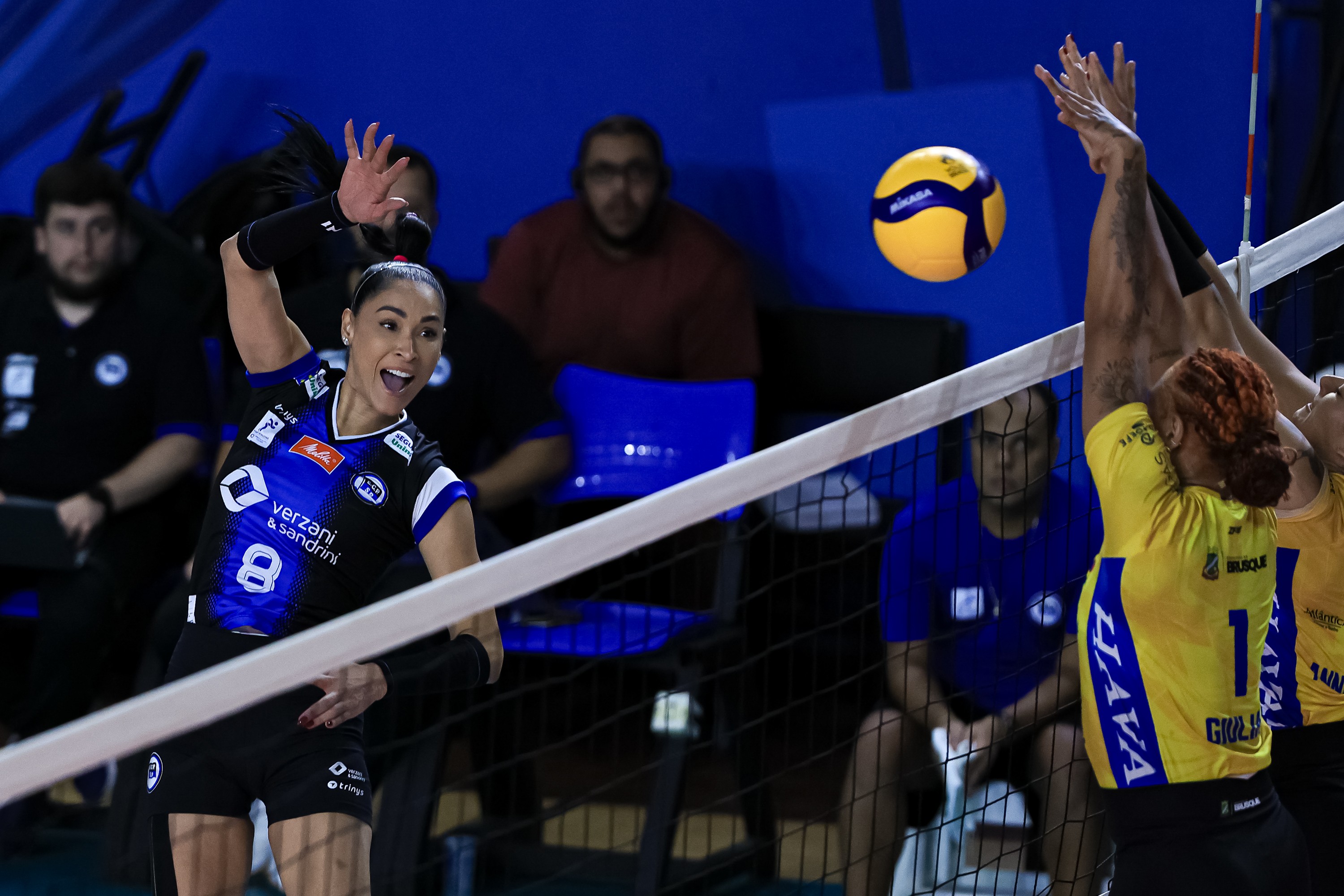 Aos 42 anos, Jaqueline Carvalho, bicampeã olímpica em Pequim-2008 e em Londres-2012, está prestes a cumprir sua meta na volta ao vôlei. A atleta que estava aposentada e não atuava desde a temporada de 2021, voltou ao esporte pelo Pinheiros, time da Superliga B, na tentativa de recolocar a equipe na elite nacional. E nesta segunda-feira, às 18h30, o Pinheiros recebe o Chapecó, no Ginásio Henrique Villaboim, em São Paulo, pela terceira e última partida da fase semifinal. O time que vencer garantirá vaga na Superliga, uma vez que ambos os finalistas da Superliga B subirão na temporada 2026/2027. Pela outra semifinal, o Brusque pode avançar neste domingo para a decisão caso vença novamente o Ceará. Em partida realizada na segunda-feira, em Santa Catarina, o time da casa venceu por 3 sets a 2. — Sou a mais experiente da equipe, jogo com meninas de 20 anos, mas estou igual a uma criança... Aquele friozinho na barriga não muda. Me sinto exatamente assim. Fico nervosa, durmo pouco. Faz parte. Isso quer dizer que ainda tenho amor pelo vôlei — comenta a jogadora, que teve grande exibição na última partida. Jaqueline comemora ponto importante em último jogo da semifinal da Superliga B Divulgação Pinheiros Jaqueline, que atuou como ponteira, levou o Pinheiros ao empate da série semifinal em 1 a 1, em confronto com o Chapecó, na última terça-feira. O time paulista precisava vencer para foçar a terceira e última partida da série. Ela marcou 14 pontos, sendo a segunda maior pontuadora do time, atrás apenas de Thainá Kiarele, com 15. O Pinheiros devolveu o placar de 3 sets a 1 contra o Chapecó, no Ginásio Henrique Villaboim, com parciais de 25/21, 22/25, 25/19 e 25/21. Dores na reta final Jaqueline atuou como ponteira pela segunda vez desde o retorno ao esporte. Para poupar os joelhos, que já passaram por três cirurgias, ela estava jogando como líbero. Na 13ª rodada do torneio, contra o Brusque, no dia 13 de fevereiro, ela "estreou" como ponteira. O Pinheiros venceu por 3 sets a 0, ela marcou 4 pontos e deixou a quadra com dores na panturrilha direita. Quando voltou aos jogos, quase um mês depois, para o primeiro duelo da semifinal, em Chapecó, Jaqueline jogou como líbero. Até o momento ela disputou 15 jogos, 13 como líbero e dois como atacante. Jaqueline ataca pelo Pinheiros, na Superliga B de 2025/2026 Ricardo Bufolin/Pinheiros — Avalio a minha volta às quadras de uma maneira bem positiva. Não imaginava que iria ajudar tanto o time. Eu queria muito atuar como líbero, ter esta oportunidade. E para quem nunca tinha feito, acho que fui bem. Sempre tive muito prazer em passar e defender e ver uma companheira de time fazer o ponto. Adoro lindas defesas... Mas sabia que, chegando nessa fase final, eu teria de dar um algo a mais, poder ajudar na ponta — comenta a jogadora. Jaqueline conta que a parte mais complicada deste retorno são as dores. Disse que este tem sido o pior momento desde o início da temporada. Observa que não fez uma pré-temporada para saltar porque sua função seria a de líbero. E que chegou no nível das companheiras de time em apenas um mês de treinos porque havia se preparado para a função de defesa. — Agora é que não está sendo fácil (risos) — declara a jogadora, que admite dores musculares após o último jogo. — Sei que faz parte, é normal. Essa é a pior coisa. Mas tem a melhor parte que é poder ajudar as atletas, passar minha experiência adiante, estar num clube formador de jogadoras e ver as crianças da categoria de base... Muitas me reconhecem. É tão legal... E para mim, que nunca tinha jogado em uma equipe em que eu era a mais experiente, estou aprendendo também. A gente está sempre aprendendo. Jaqueline, de volta ao vôlei, pelo Pinheiros Ricardo Bufolin/Pinheiros Entre as dificuldades, Jaqueline destaca ainda a mudança radical no dia a dia. Mãe de Arthur, de 12 anos, ela estava feliz e acostumada com a rotina da casa, da família. Após a aposentadoria, priorizou estar ao lado do filho, levá-lo para a escola, etc. E voltar ao ritmo de atleta de alto rendimento exigiu retomar o esquema anterior. Ela, no entanto, destaca o apoio do marido, o ex-jogador Murilo, nessa equação. — Ele é o ponto forte para mim e para o Arthur. Ele tem sido meu técnico, meu preparador fisico, meu ajudante diário, meu fisioterapeuta... tem sido tudo. Porque esse retorno às quadras não foi fácil, foi difícil. Não vou mentir. Mas tem sido muito bacana ver o comprometimento dele também nessa empreitada. Jaqueline brinca que o marido a apoiou porque não aguentava mais ser "vítima" de seus vídeos caseiros. Com menos tempo "disponível", ele seria poupado das brincadeiras. É que Jaqueline gosta de postar vídeos em suas redes socias envolvendo o marido. E eles são divertidíssimos. — Certeza que foi isso, para dar um refresco para ele. Eu adoro e ele não é muito dessas brincadeiras, mas está se soltado mais — fala, aos risos. — Estou tão focada no Pinheiros, que não tenho cabeça para os vídeos. Eu estou bem feliz e quero aproveitar muito essas partidas ainda. Não sei quando será o último jogo. O que eu mais gosto quando jogo? De ganhar (risos). Sobre o futuro, Jaqueline ainda não bate o martelo. Não decidiu se continua no Pinheiros, caso o clube suba à elite. Ela disse que gostaria de se dedicar a um novo desafio, aproveitando sua vocação engraçada e comunicativa. — Tudo terá de ser muito conversado entre eu e o Murilo. Não decido minha vida só, tenho uma família por trás... Voltei por amor ao vôlei, a saudade apertou — fala Jaqueline sobre a possibilidade de voltar à elite se o Pinheiros se classificar — Se eu não continuar no vôlei, bom, sempre sonhei em ser apresentadora. Eu falo demais e acho que me daria muito bem.