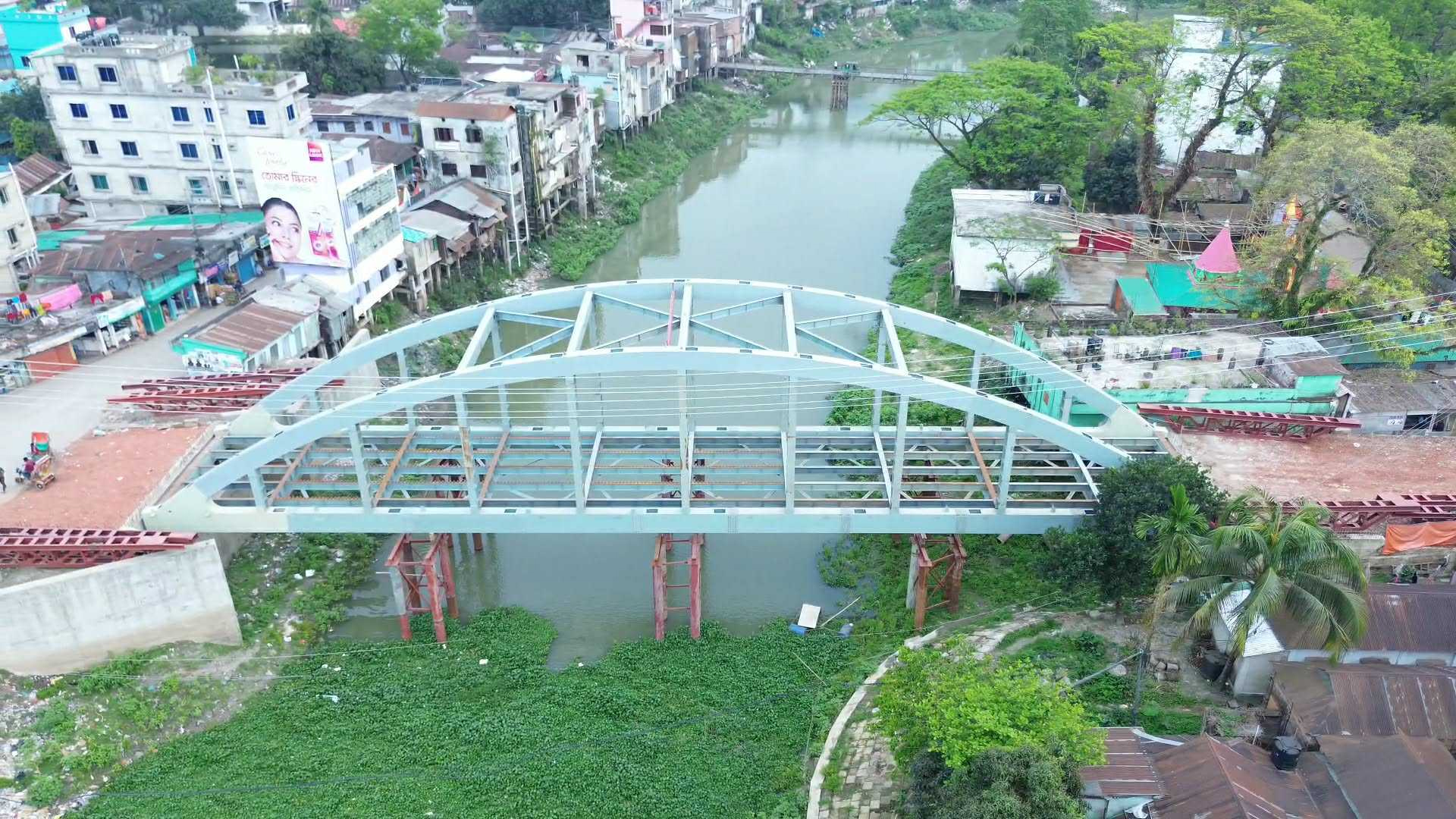 নেত্রকোনায় দৃশ্যমান হচ্ছে শহুরের ভেতর দিয়ে প্রবাহিত মগড়া নদীর ওপর দৃষ্টিনন্দন নেটওয়ার্ক স্টিল আর্চ সেতু। নদীর বক্ষদেশে কোনো ধরনের পিলার ছাড়াই এমন নান্দনিক সেতুতে সৌন্দর্য বাড়বে শহরের। তেমনি যানজট কমবে বলে মনে করছেন সাধারণ মানুষ। তবে সময়ের মধ্যে শেষ হওয়া নিয়ে কিছুটা শঙ্কা থাকলেও ঠিকাদার এবং বাস্তবায়নকারী প্রতিষ্ঠান বলছে দ্রুত শেষ হবে। এদিকে কাজের সময়ে মাটি দিয়ে ভরাট করা ও পিলার কাজ শেষে দ্রুত অপসারন চান স্থানীয়রা।নেত্রকোনা পৌরসভা ও সওজের দীর্ঘদিনের দ্বন্দ্বের অবসান ঘটিয়ে জীর্ণশীর্ন বেইলী নাগড়া সেতু বাদ দিয়ে মগড়া নদীর ওপর এবার নির্মিত হচ্ছে ‘নেটওয়ার্ক আর্চ ব্রিজ’। যা দৃশ্যমান হওয়ায় সাধারণ মানুষ আনন্দিত উচ্ছ্বসিত। দীর্ঘদিনের ভোগান্তি কমবে শহরবাসীর। দিনে রাতে শহরের সৌন্দর্য থাকবে বিশ্বের উন্নত কোনো দেশের মতো। ব্রিজের কাজ শেষ না হলেও চলাচলকারী সাধারণ মানুষ এক পলক থেমে চোখ জুড়িয়ে নেন। দুই বছর মেয়াদে ২২ কোটি ৮২ লাখ টাকা ব্যয়ে সেতুটি নির্মাণ করছে সড়ক বিভাগ। ৫৬ মিটার দৈর্ঘ্য এবং ফুটপাতসহ ১১.৮০ মিটার প্রস্থের সেতুতে নেই কোনো পিলার। সিঙ্গেল স্প্যানের ব্রিজটিকে দেখে কেউ কেউ বলছেন ঝুলন্ত ব্রিজ। এতে নদীর নাব্যতাও থাকবে। কমবে শহরের অসহনীয় যানজট। শহরবাসী খুশি হলেও বলছেন ধীরগতিতে চলছে কাজ। এছাড়াও কাজের সুবিধায় নদীর মাঝে ভরাট করা মাটি খননসহ লোহার পিলার ও অন্যান্য সরঞ্জাম অপসারণের দাবি জানান তারা। আপাতত স্টিলের স্ট্রাকচার শেষ হয়ে গেলেও শুধু ঢালাই বাকী। তবে ঈদুল আজহার আগেই কাজ শেষ করার অশ্বাস দেন ঠিকাদার। আরও পড়ুন: নেত্রকোনায় বিএনপি-যুবদলের ৪ নেতার বিরুদ্ধে সাংগঠনিক ব্যবস্থাদুই থেকে আড়াইমাসের মধ্যেই শেষ হবে। দুটি গাড়ি অনায়াসে চলাচল করবে। যানজটের কোনো সুযোগ থাকবে না বললেন ঠিকাদার আব্দুল্লাহ আল ফারুক খান সনি। নদীর গতিপথ ঠিক রাখতেই এই সিঙ্গেল স্প্যানের ব্রিজ করা হচ্ছে। দুইপাশে ফুটপাত বাকী রয়েছে। এতে শহরের সৌন্দর্যসহ আমরা যানজটের নিরসন করতে সক্ষম হব। যা নির্ধারিত সময়েই শেষ হবে বলেন জানান সওজের এই কর্মকর্তা। অপসারণ করা হবে সব সরঞ্জাম বললেন সওজের উপ-বিভাগীয় প্রকৌশলী পার্থ প্রতীম মিত্র। সড়ক ও জনপথ বিভাগ বাস্তবায়নাধীন ব্রিজের গত জুলাই ২০২৪ সালে কার্যাদশে হলেও পরের বছর ২০২৫ সালের শুরতেইে কাজ শুরু হয়। যা শেষ হওয়ার কথা চলতি বছরের জুনে।
