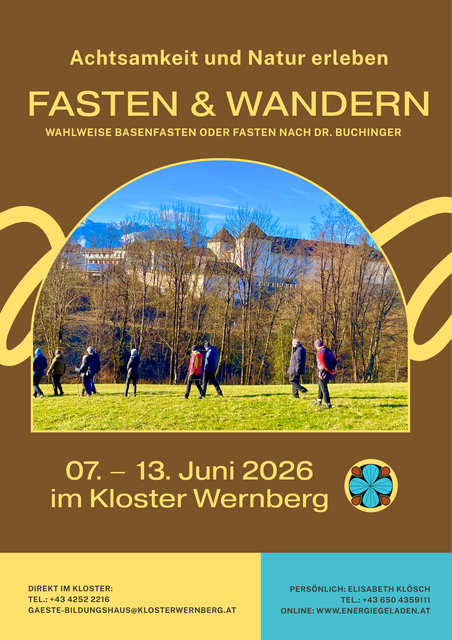 Noch Plätze frei: Fasten & Achtsames Wandern In Begleitung von Erich Pak vom 07.06 - 13.06.2026 Diese besondere Woche schenkt dir mehr – mehr Natur, mehr Bewegung und mehr Stille. Im Mittelpunkt steht das achtsame, entspannte Wandern – sanft, entschleunigt und ganz im eigenen Tempo. Begleitet werden wir von Erich Pak, einem erfahrenen Wanderführer. Mit viel Gespür für den Moment führt er uns durch diese Woche – mit bewussten Schritten, offenen Augen und Raum für das, was gerade da ist. Gönn...