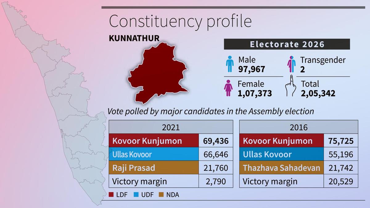 Kunnathur’s political identity has been inseparable from the RSP for decades. However, a split occurred when the official RSP faction moved from LDF to UDF in 2016, with Kovoor Kunjumon forming RSP (Leninist) to remain with LDF. Since then, the constituency has been a primary battleground for two RSP factions