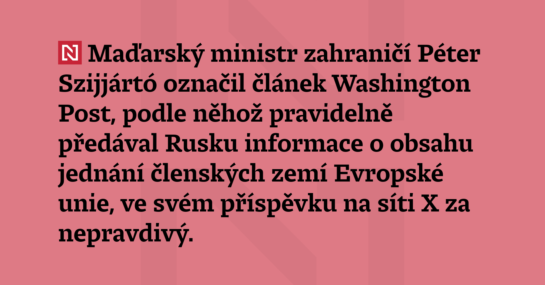 Maďarský ministr zahraničí Péter Szijjártó označil článek Washington Post, podle něhož pravidelně předával Rusku informace o obsahu jednání členských zemí Evropské unie, ve svém příspěvku na síti X za nepravdivý.