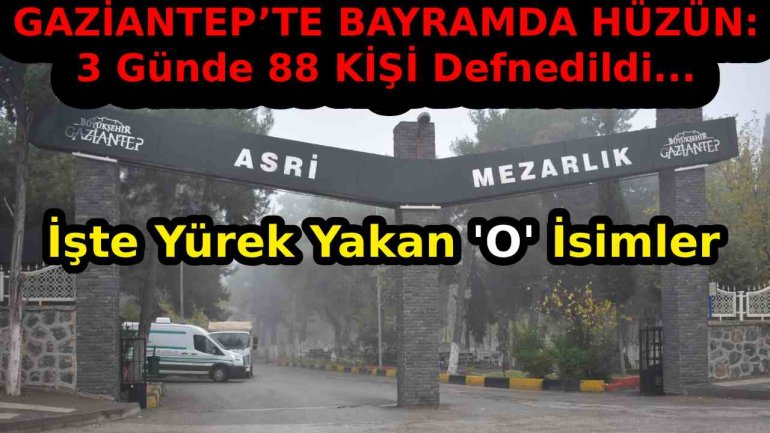 Gaziantep’te bayramın 3 gününde 88 kişi defnedildi. 20-21-22 Mart 2026 defin listeleri isim isim ve detaylarıyla haberimizde.
