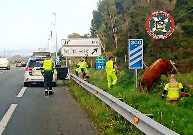 Dos toros irrumpen en la autovía A-8 y obligan a intervenir a los servicios de emergencia
