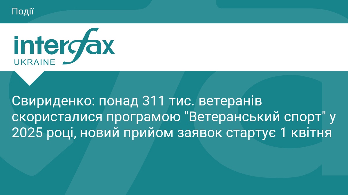 Понад 311 тис. ветеранів і ветеранок уже скористалися державною програмою "Ветеранський спорт", а прийом заявок на участь у ній на наступний квартал розпочнеться 1 квітня, повідомила прем’єр-міністр України Юлія Свириденко.