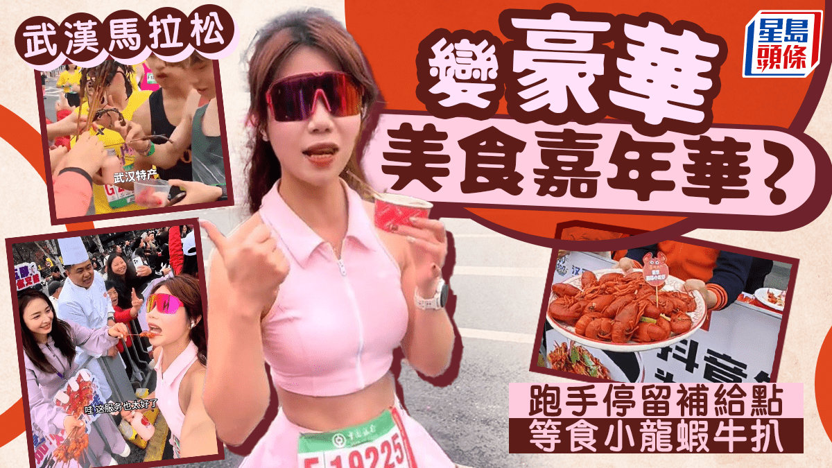 今日(22日)上午,湖北武漢馬拉松在漢口沿江大道舉行。除了各選手努力衝線,本次馬拉松有另一個亮點,就是長江大橋附近的補給點,主辦方為跑者準備各式美食,例如熱乾面、綠豆湯、小龍蝦、甲魚(香港俗:水魚)、牛扒等美食。 補給點有許多跑手停留,一名來自深圳趕來的選手坦言,武漢的特色熱乾面非常好吃,風景太美了,武漢人民非常熱情。 來自天津的跑者在等待牛扒出爐,「武漢馬拉松真的太豪橫了,我來武漢就是為了吃一個