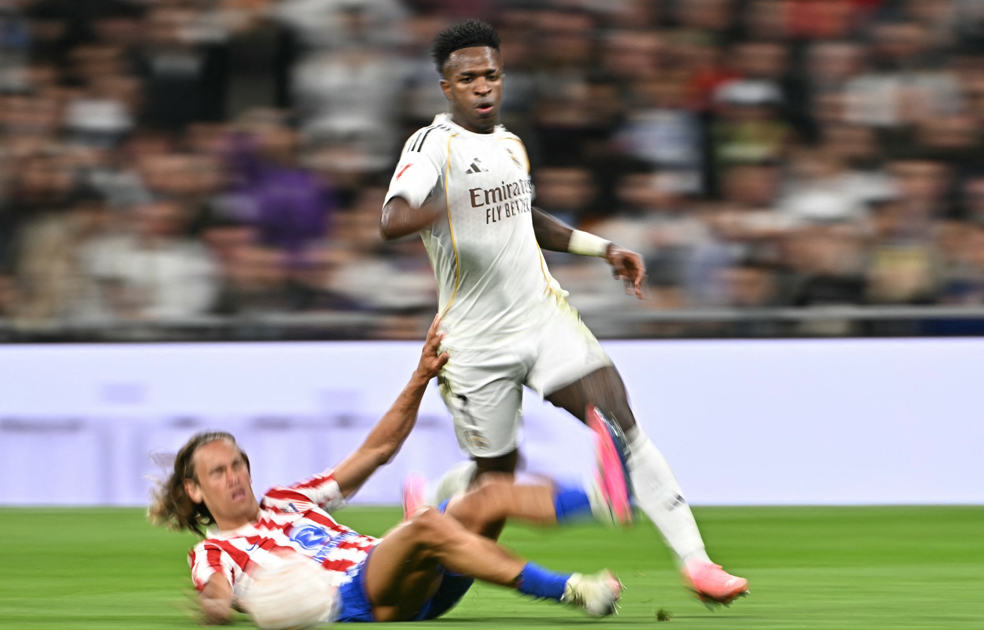 Pese al tanto inicial del nigeriano Ademola Lookman (33') y al empate provisional a dos logrado por el argentino Nahuel Molina (66'), las dos dianas del brasileño Vinicius (52' de penal, 72') y una del uruguayo Fede Valverde (55') decidieron este emocionante derbi en el estadio Santiago Bernabéu The post Real Madrid triunfa en el derbi contra el Atlético y se mantiene al acecho del Barcelona appeared first on EL NACIONAL .