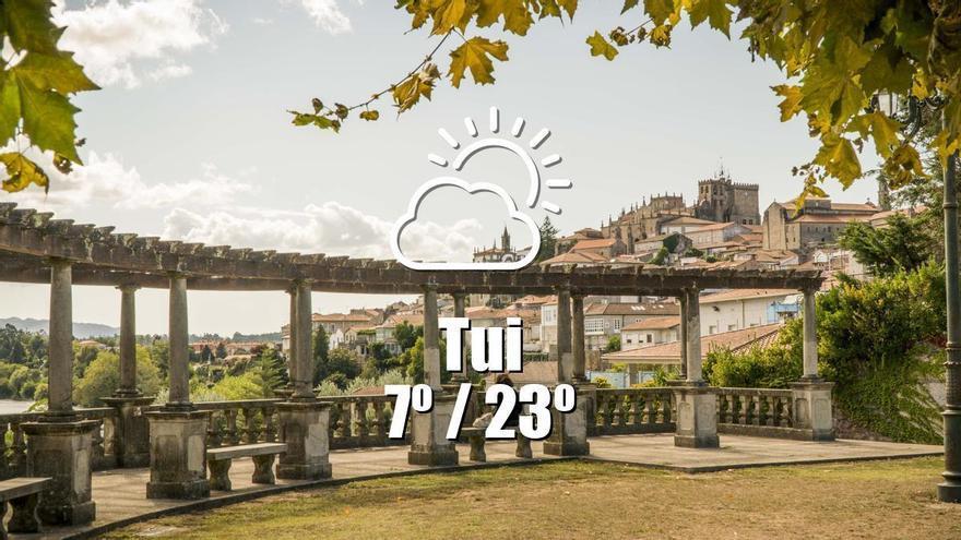 El día de hoy, 23 de marzo de 2026, Tui se presenta con un tiempo mayormente despejado, lo que permitirá disfrutar de un ambiente agradable a lo largo de la jornada. Desde las primeras horas de la mañana, el cielo se mantendrá despejado, con algunas nubes altas que no afectarán la luminosidad del día. A medida que avance la mañana, las temperaturas comenzarán a descender ligeramente, alcanzando un mínimo de 7 grados en las primeras horas, para luego estabilizarse en torno a los 12 grados hacia el mediodía.