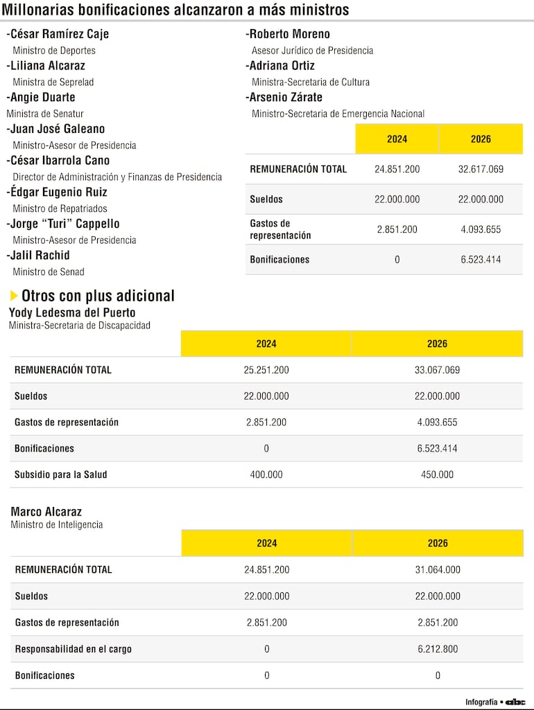 Más ministros figuran en el festín de bonificaciones