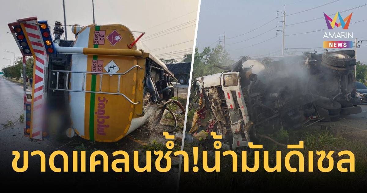 ขาดแคลนซ้ำ! รถบรรทุกน้ำมันดีเซล พลิกคว่ำ ส่งผลให้น้ำมันรั่วไหลลงพื้นถนน บริเวณ ก่อนถึงสัญญาณไฟแดงบ้านวัด โคราช