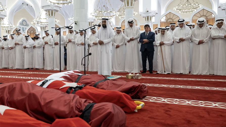 Katar'da düşen askeri helikopterde şehit olan Katar ve Türk askeri personelleri için cenaze namazı kılındı. Şehitlerimizin naaşları cenaze namazı sonrası askeri uçakla Katar'dan Türkiye'ye uğurlandı.