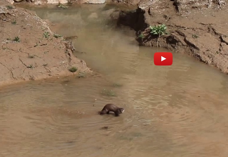 Erzurum'da nesli tehdt altındaki su samuru görüntülendi