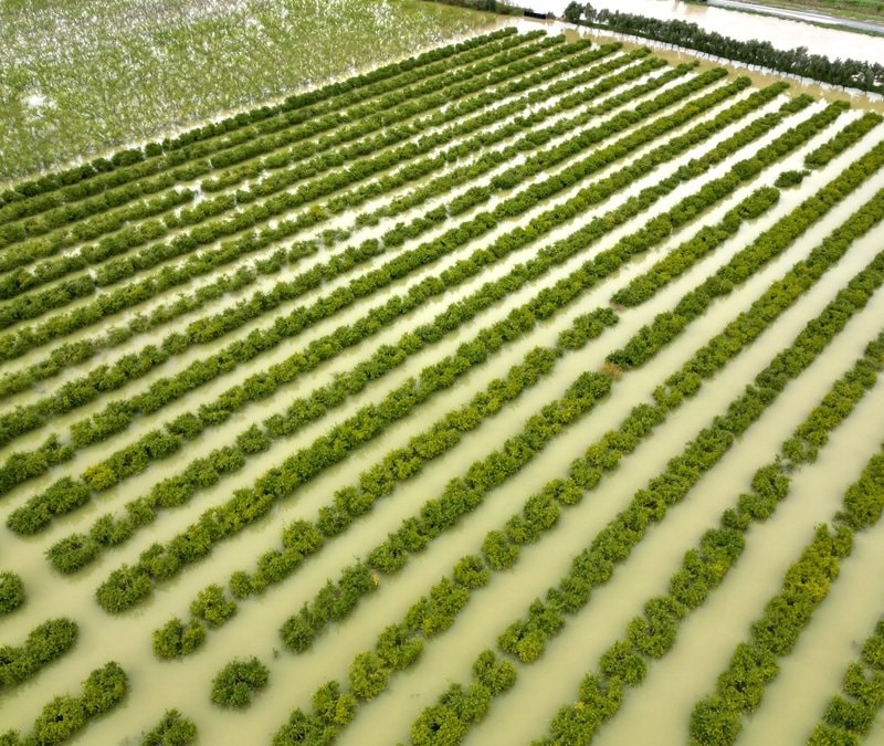 Tarsus ilçesinde dün etkili olan sağanak nedeniyle su altında kalan tarım arazileri dronla görüntülendi.