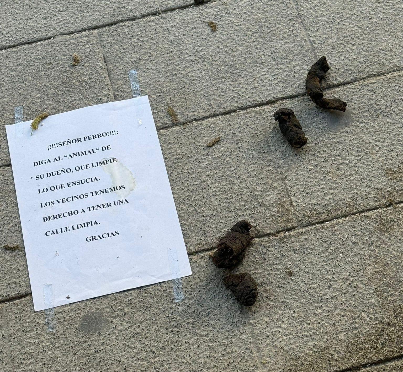 Las muestras de incivismo en diferentes puntos y barriadas de Palma parecen no tener fin. Y llegan a agotar la paciencia de quienes desean vivr en un espacio tranquilo. Una muestra que ha llamado la atención por su originilidad y a la vez expresión del malestar existente en la zona del final de la calle Arxiduc Lluís Salvador, Son Ferragut e incluso en las proximidades de Son Oliva la hemos podido observar en un tramo de la primera vía, donde una persona residente ha querido expresar su malestar y enfado por la gran cantidad de excrementos que aparecen en la vía pública y no son retirados por los amos de los perros que defecan allí.