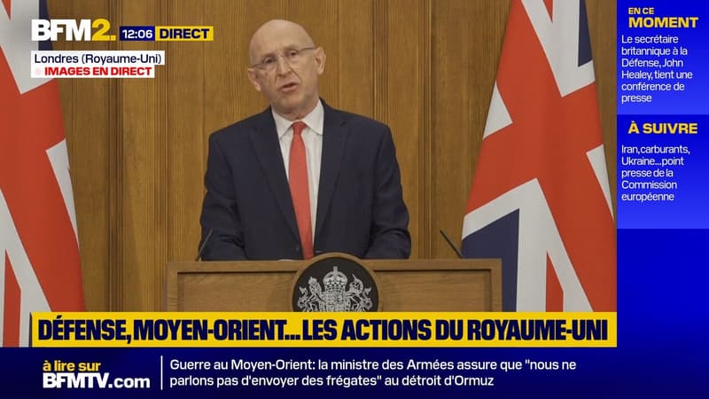 John Healey, secrétaire britannique à la Défense, donne une conférence de presse jeudi 9 avril sur les actions du Royaume-Uni.