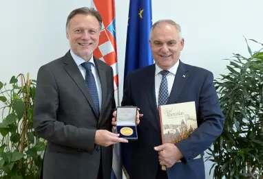 Predsjednik Hrvatskog sabora Gordan Jandroković primio je u četvrtak župana Splitsko-dalmatinske županije Blaženka Bobana koji mu je uime te županije uručio jubilarnu medalju "Kralj Tomislav", izrađenu u povodu 1100. obljetnice Hrvatskoga Kraljevstva.