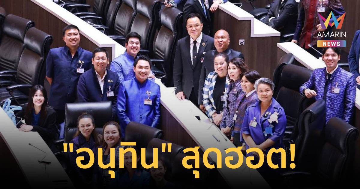 "อนุทิน" สุดฮอต "สส.-สว." ตบเท้าขอลายเซ็น "เล่มคำแถลงนโยบาย" กลางห้องประชุมสภา ก่อนถ่ายรูปคู่ก๊วนภูมิใจไทย "บิ๊กเกรียง" ร่วมเฟรมด้วย