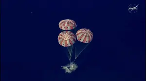 לאחר כמעט עשרה ימים בחלל שבו ארבעת האסטרונאוטים לכדור הארץ, והשלימו את המשימה המאוישת הראשונה סביב הירח מאז תוכנית אפולו. במהלך המשימה הם ביצעו שתי הקפות סביב כדור הארץ והקפה של הירח שנמשכה כשבע שעות. הנשיא טראמפ אמר לאחר הנחיתה כי "מדובר במסע מרהיב"