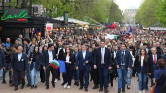 Лидерите на "Продължаваме промяната - Демократична България" (ПП-ДБ) поведоха шествие в София под надслов "Силна България в силна Европа" за края на предизборната си кампания. Шествието тръгна от пл. "Света Неделя" по бул.