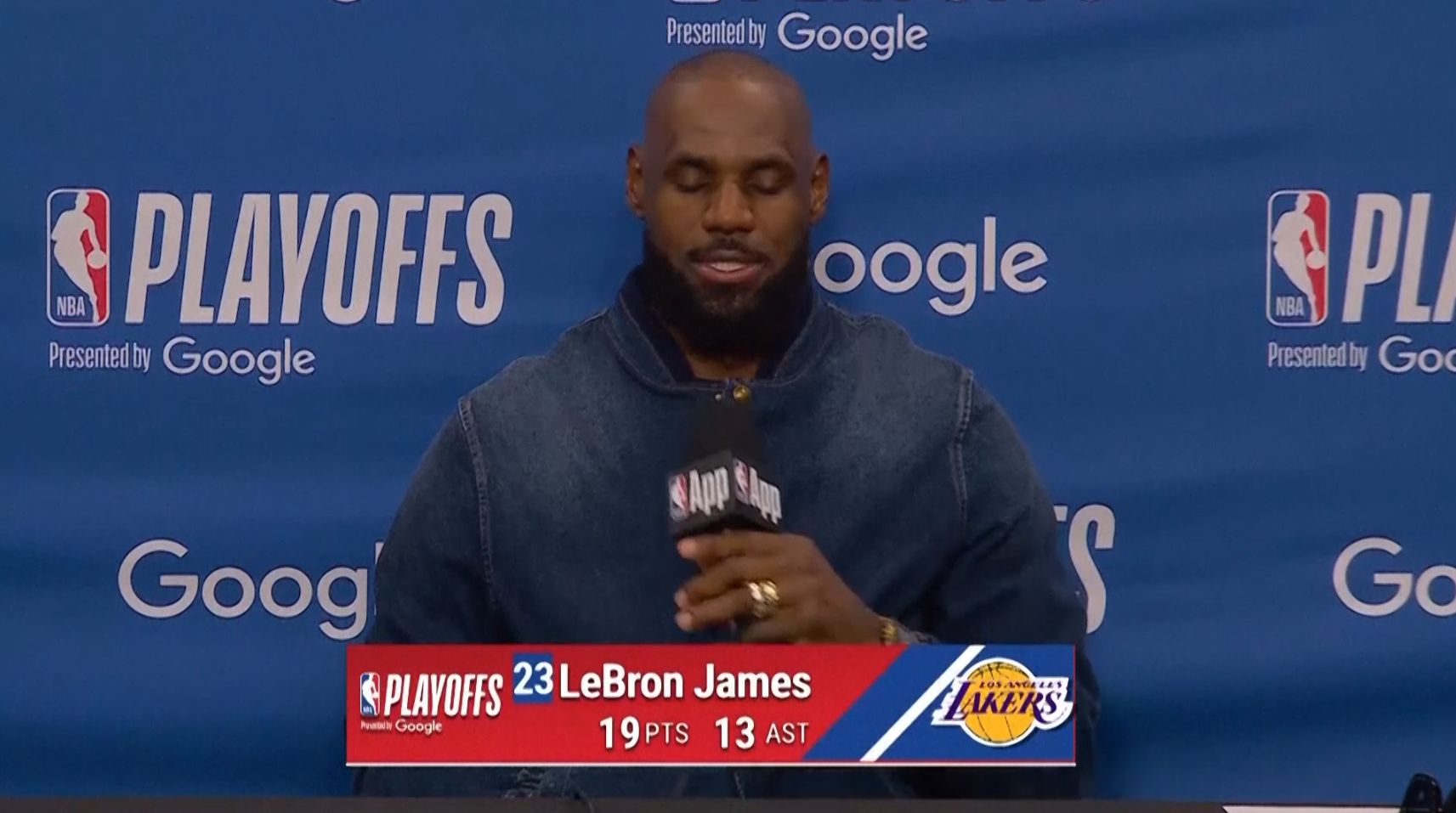 LeBron James steht mit seinem Sohn in einem Playoff-Spiel auf dem Feld - und zeigt sich darüber sichtlich happy, wobei er sein Glück kaum fassen kann.